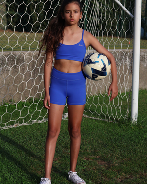 Be fierce and stylish in Chasing Oso's Bolt Crop. This crop will be the go to crop for your little athlete. Constructed in the perfect shade of vivid blue block colour way, our Bolt Crop features adjustable shoulder straps, for ultimate stretch and a custom fit. A show stopping staple to add to your Oso wardrobe!