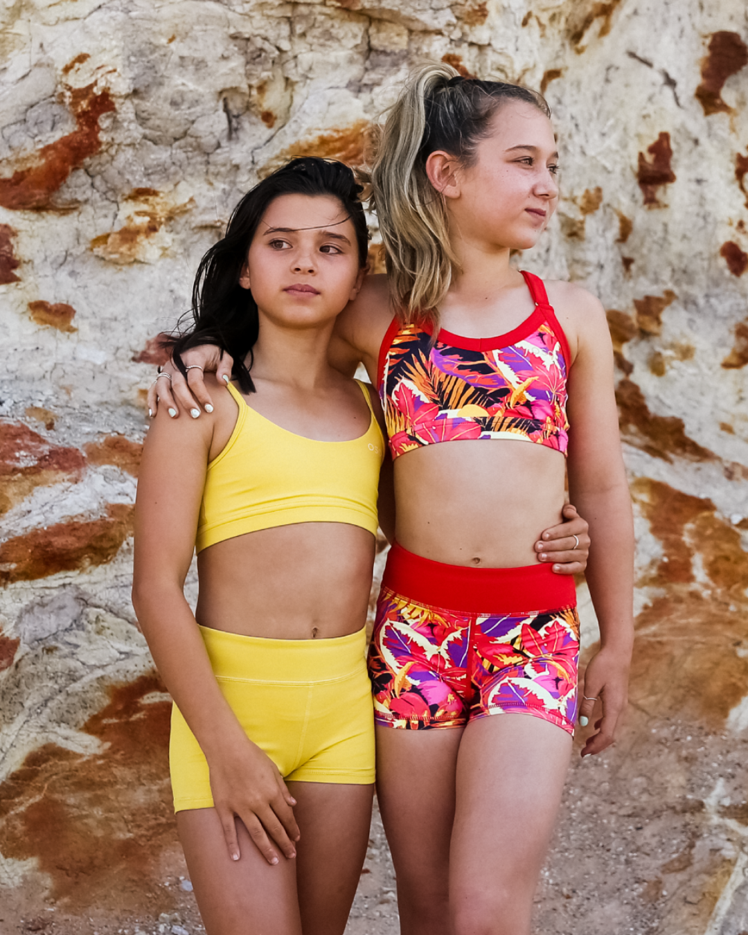 You're going to love our new Blaze Crop! In the fierce colours of Summer, this crop is made to conquer! It features a bold, tropical print with a striking red band and adjustable straps. It's detailed with gold logos, sliders and clips. Conquer those goals in our Blaze Crop.