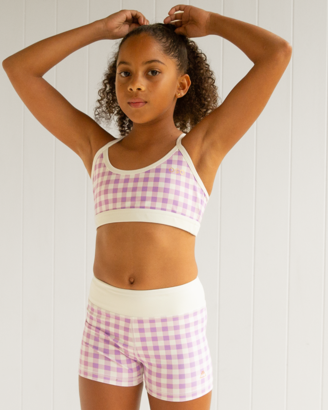 Our Check Yo'Self crop is designed with little girls in mind, so they'll feel confident and supported. Coming in a fun all-over gingham purple and white check design, our crop features adjustable cross spaghetti straps that helps her stay comfortable and is perfect for all day wear for any leisure or active lifestyle.